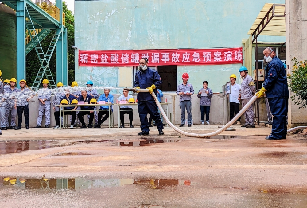 2023年8月17日上午,江南精密分公司在鹽酸裝卸區(qū)舉行了一場緊張有序的鹽酸儲罐泄漏事故應(yīng)急預(yù)案演練。此次演練模擬了在廢酸裝車過程中卸酸軟管脫落,導(dǎo)致廢酸外漏事故發(fā)生、啟動事故應(yīng)急預(yù)案的場景。集團(tuán)安環(huán)部、江南鐵合金和江南創(chuàng)佳分別派代表觀摩。