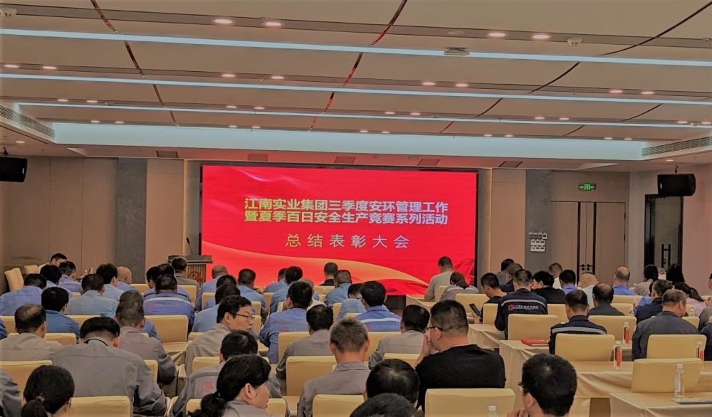 9月27日下午,在江南集團安全生產委員會的精心組織下,2023年三季度安環工作例會及夏季百日安全生產競賽系列活動總結表彰大會在寶江會議中心隆重舉行。集團安全環保條線工作者、員工代表及活動獲獎人員共計100多人參會。集團安全總監許潮出席會議并發表重要講話。