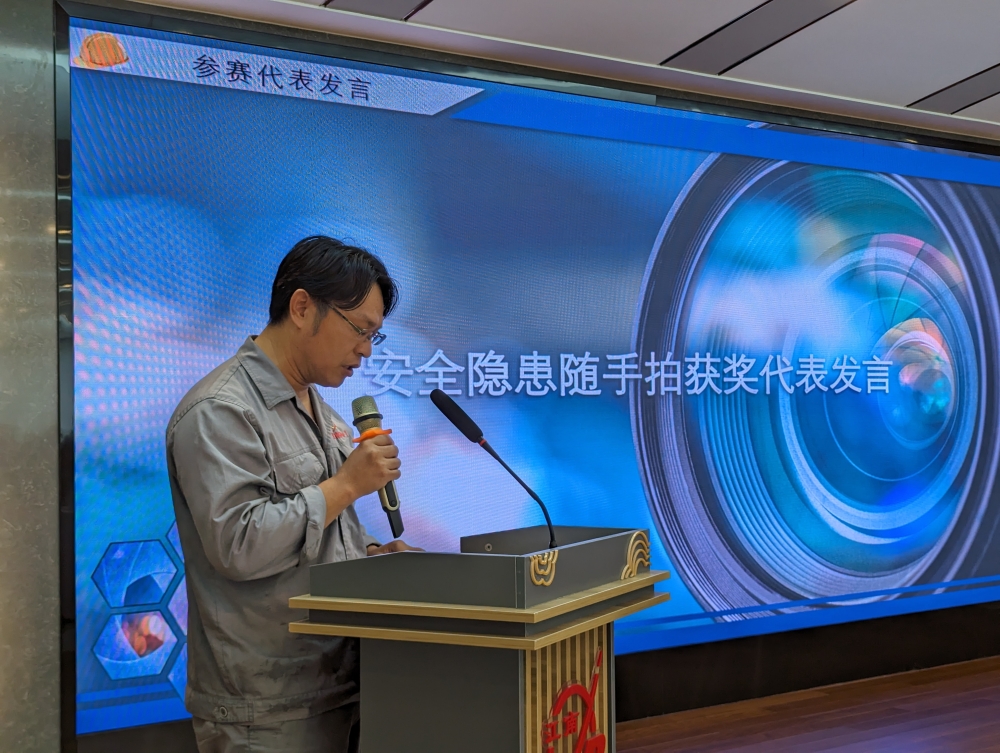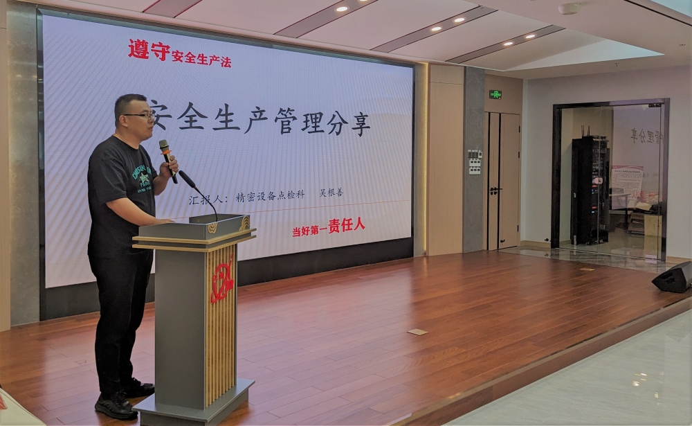 員工代表吳根善就本部門安全管理經驗進行分享,啟發員工從本崗位著眼,改進創新,促進安全工作。會議通過案例分析和動畫視頻向與會人員開展一次安環警示教育。