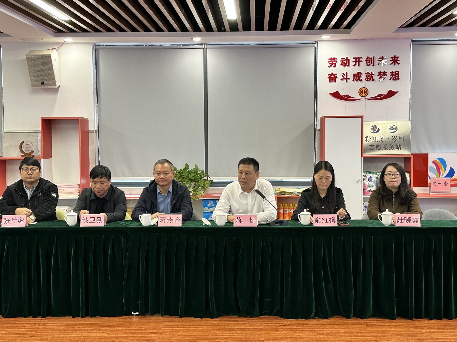 隨后,一行人與岑村村干部一起召開了“村企共建”交流會,會上,蔣健書記分享了岑村村在鄉(xiāng)村振興、美麗鄉(xiāng)村建設(shè)、黨建工作等方面的成功經(jīng)驗和做法。岑村村首先是踐行“千萬工程”,探索強村富民新模式。整合利用村域資源、產(chǎn)業(yè)優(yōu)勢,積極拓展村級經(jīng)濟發(fā)展空間,加大村域企業(yè)轉(zhuǎn)型升級和技改投入,不斷提高產(chǎn)業(yè)集聚集約化水平。樹牢精益發(fā)展的理念,通過集體土地流轉(zhuǎn)、優(yōu)化經(jīng)營方式等途徑,盤活閑置資源,拓展升值空間。其次是推進“三生融合”,共繪和美宜居新岑村??茖W編制美麗鄉(xiāng)村規(guī)劃,下好人居環(huán)境整治全盤棋,著力打造岑村老街市集,穩(wěn)步推進農(nóng)民自建區(qū)建設(shè)、岑村中心村提升、養(yǎng)老服務(wù)等重點工程,推動生產(chǎn)、生活、生態(tài)“三生融合”。最后是學習“楓橋經(jīng)驗”,豐富鄉(xiāng)村善治新內(nèi)涵。堅持小事不出組、大事不出村,吸納常阿姐議事會、民生茶社等建在網(wǎng)格上,努力化解群眾急難愁盼問題。實施“文明積分賦能鄉(xiāng)村治理”項目,將志愿服務(wù)融入“文明積分制”,構(gòu)建共建共治共享的鄉(xiāng)村治理新格局。