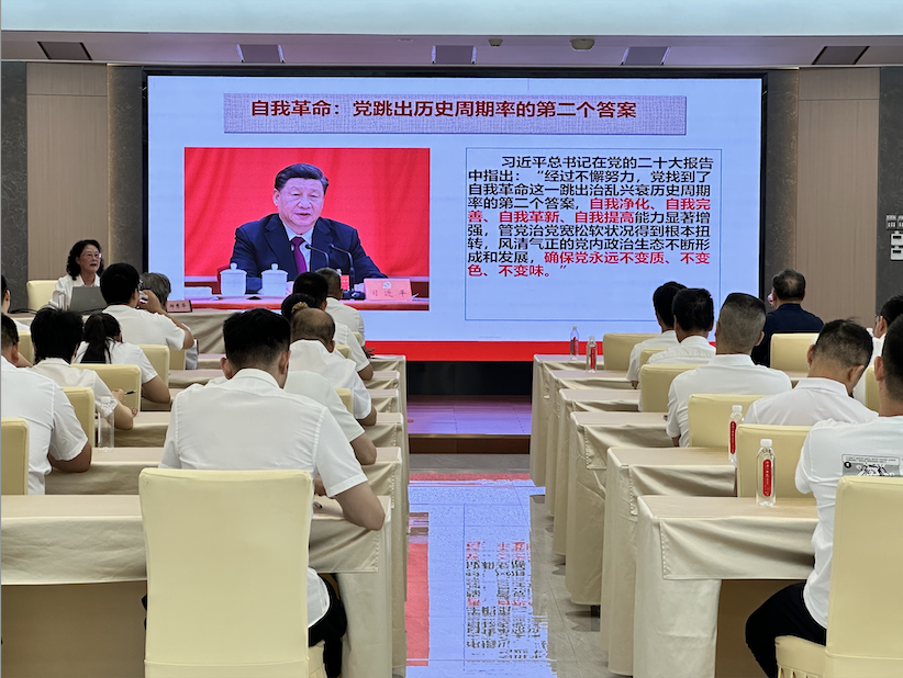 為深入學習貫徹習近平總書記關于黨的自我革命的重要思想,推動全面從嚴治黨向縱深發展,7月9日下午,江南集團黨總支舉辦了“黨的自我革命永遠在路上”專題黨課學習活動。活動由集團黨總支書記梅平主持,近50名黨員、預備黨員和入黨積極分子參加。