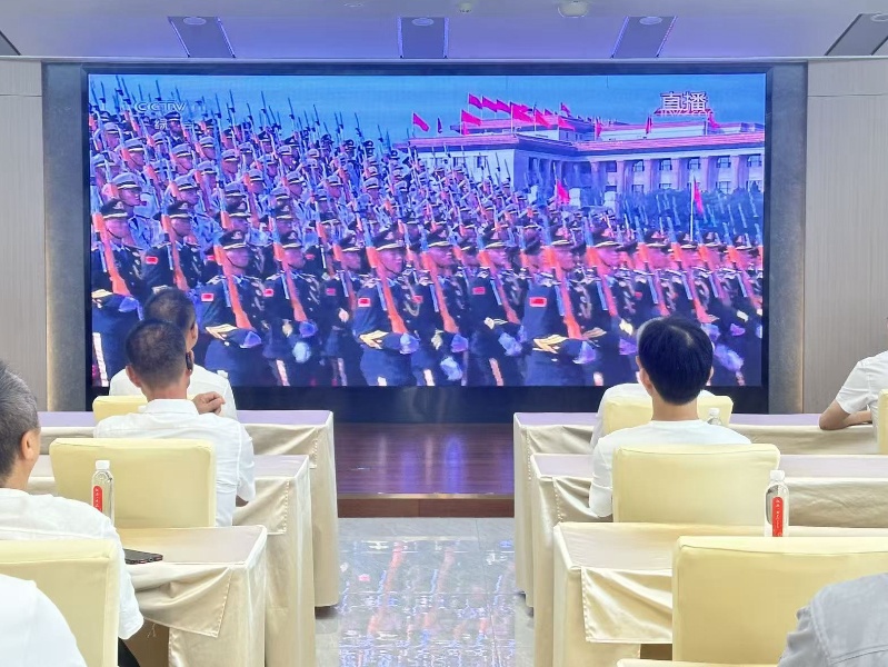 為弘揚偉大愛國主義精神,激發民族自豪感與歷史使命感,9月3日上午,江南集團黨總支組織全體黨員及入黨積極分子在寶江國際會議中心集中觀看紀念中國人民抗日戰爭暨世界反法西斯戰爭勝利80周年大會實況直播,共同見證這一具有重大歷史意義的盛大慶典,感受強國強軍新時代風貌。